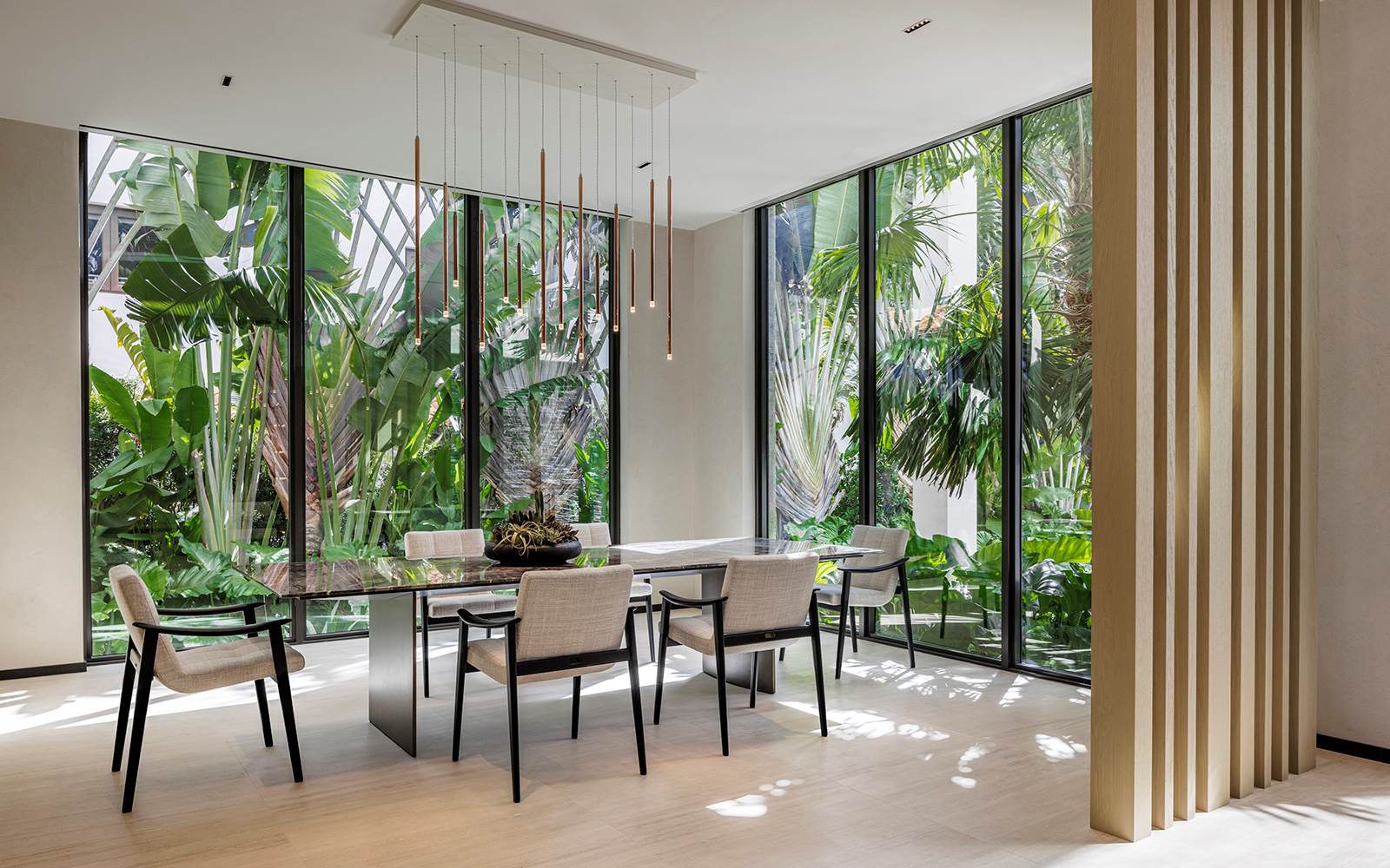 这幢由建筑师Kobi Karp设计的别墅坐落在日落岛上,这四座人工岛是迈阿密海滩最负盛名的住宅飞地之一。项目的主旨是创造出与外部美景协调一致的环境空间,毫无疑问,这一点已经完美实现。Minotti家具因其精致的风格而受到建筑师Felix Coehn的青睐,他与Minotti迈阿密旗舰店合作挑选的家具将优雅的热带风情与精湛的意大利工艺结合在一起。