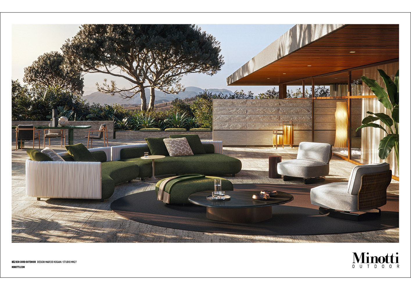 自9月起,Minotti全新广告宣传活动精彩上线,首次以四个独立主题呈现,主角是今年4月在米兰国际家具展上亮相的2025系列的沙发和座椅作品,其中包括:Marcio Kogan / Studio MK27设计的Bézier ,Giampiero Tagliaferri设计的Coupé,GamFratesi设计的Vivienne,Hannes Peer设计的Riley