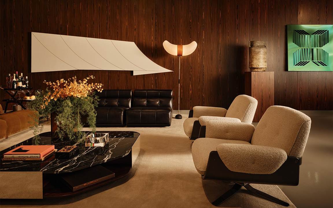 值此机会,2025系列也在门店登场亮相,该系列以当代视角焕新演绎品牌的设计语言,推出富有代表性的精选家具作品,其中,Giampiero Tagliaferri操刀设计的Coupé沙发座椅系列颇为引人注目。