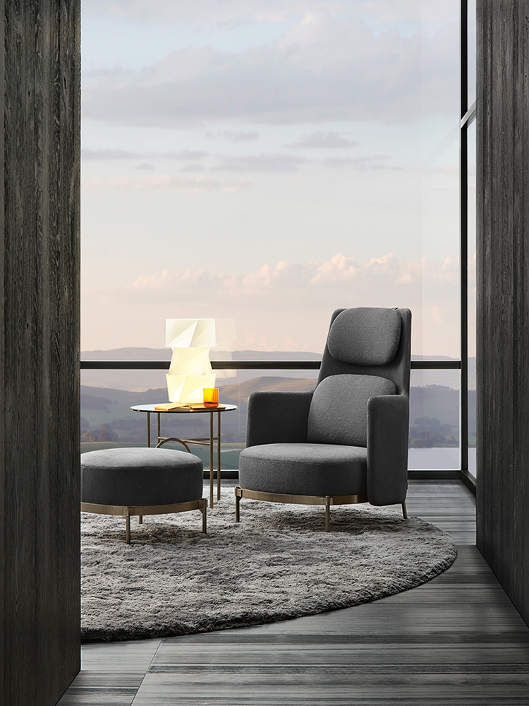 基壳的柔软弧面突显线条的精致感和温馨感,搭配精心设计的扶手和造型圆润的靠垫。