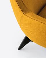 Die Schaumstoffschale ist klassisch geformt und hat eine Rückenlehne, die wie eine Muschel einhüllend, einladend und schützend ist. Der Sitz ruht auf einem Fuß aus Aluminiumdruckguss, der in der Farbe Brandy glänzend lackiert ist. Er gibt dem Sessel eine edle Note. In der Ausführung in Leder erinnert er an die Metalloberflächen hochwertiger Ledertaschen.