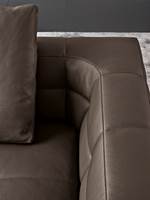 Steppnähte zieren alle Oberflächen der Elemente und zeichnen auf dem Bezug der Basis, der Kissen, der Armlehnen und der Rückenlehne gleichmäßige Streifen. Der dadurch entstehende Steppungseffekt ist charakteristisch für die Ästhetik dieses Sitzprogramms, das alleine beim Betrachten erahnen lässt, wie komfortabel es ist.