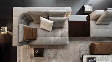 Mit dem umfassenden Programm lassen sich originelle Konfigurationen kreieren, die dank der zur Auswahl stehenden exklusiven Elemente und Bezüge nach Wunsch individuell gestaltet werden können. Die Kompositionen gehen einen Dialog mit den Kleinmöbeln der 2020 Collection (Beistelltische, Konsolen, Bänke und Sessel) ein, welche die Symmetrie auf wohltuende Weise unterbrechen und dazu beitragen, ein Wohnambiente mit starker Persönlichkeit zu schaffen.