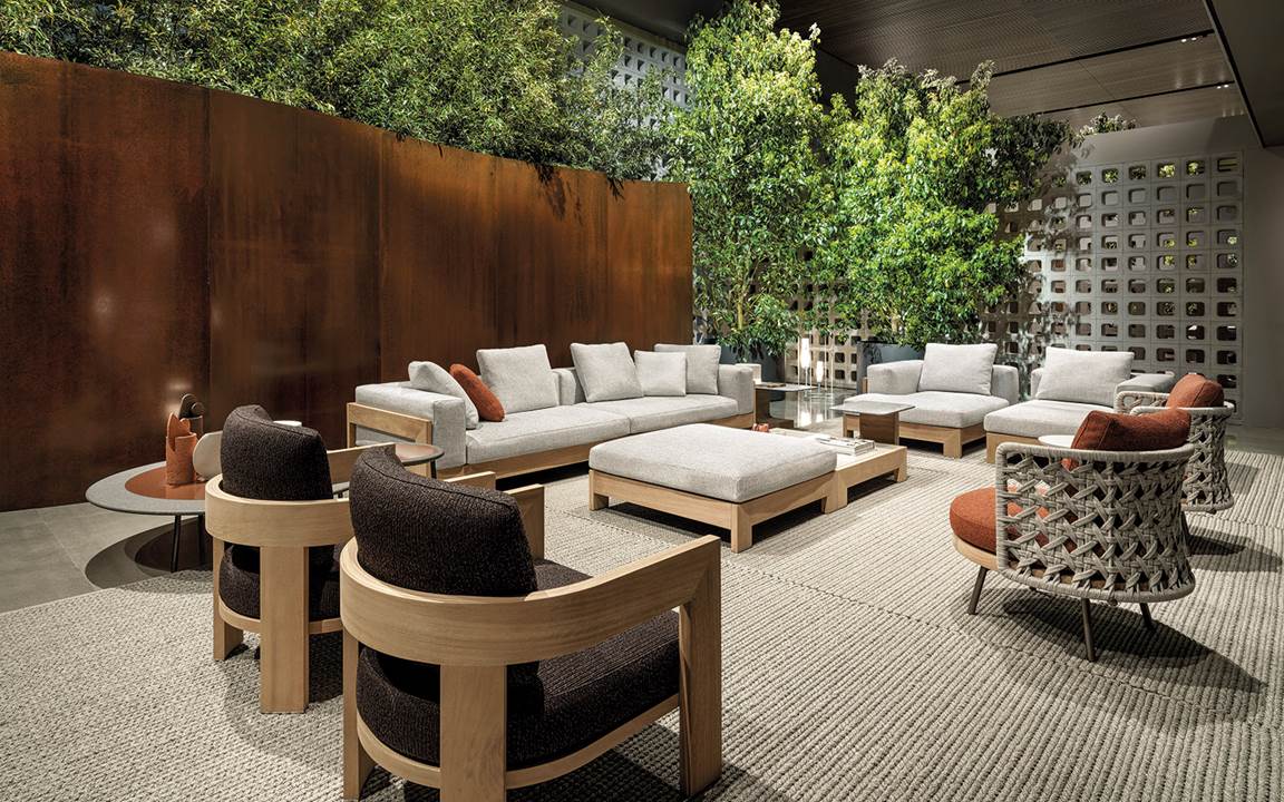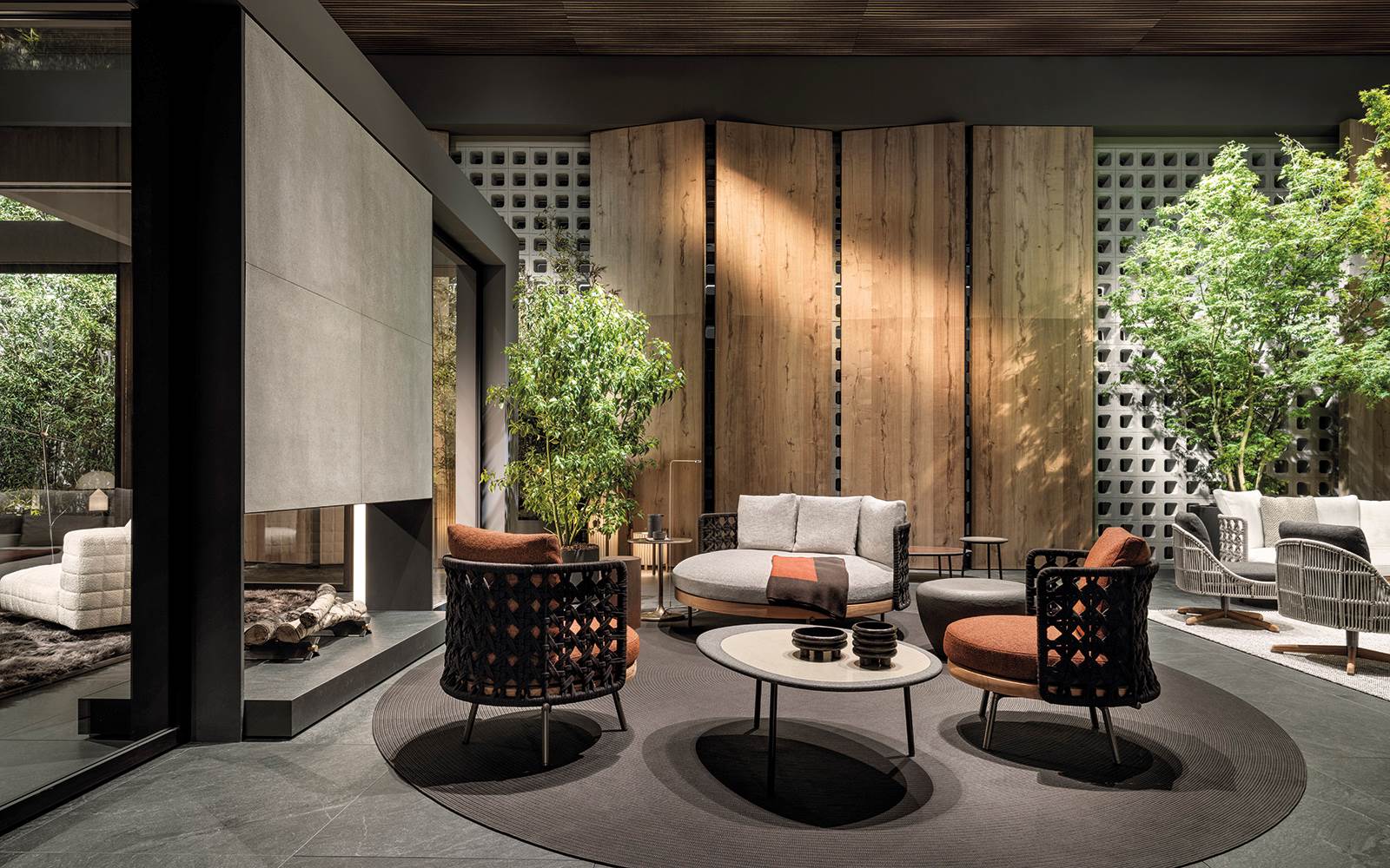 Die für den Innenbereich entworfenen Möbel und die markantesten Modelle der letzten Kollektionen stehen in perfekter Harmonie mit den neuen Entwürfen für den Außenbereich, die von Inoda+Sveje, Nendo, Gordon Guillaumier und Rodolfo Dordoni entworfen wurden, in einer wahren Entdeckungsreise zu den Werten der Marke.