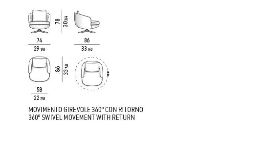 Diese ist sowohl feststehend mit Beinen aus lakritzfarbenem Eschenholz als auch drehbar auf einem Vier-Speichen-Fuß aus druckgegossenem Aluminium in Bronze oder poliertem Zinn erhältlich.