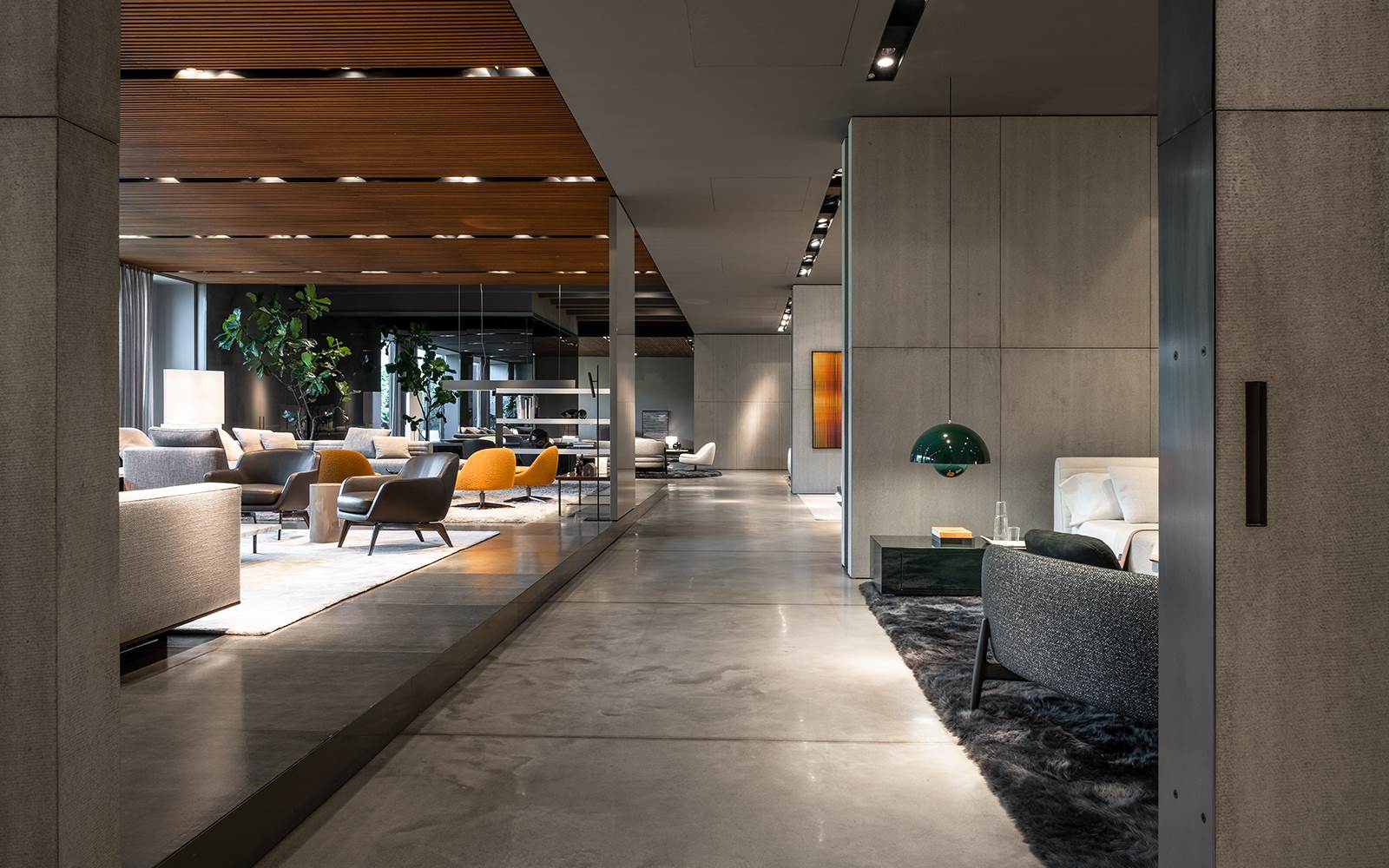 Der 2012 gestaltete Showroom des Unternehmens feiert dieses Jahr sein 10-jähriges Bestehen. Er erneuert sein Ausstellungsprojekt mit der Präsentation der neuen Möbel aus der 2022 Collection und valorisiert so die Identität der Marke, die die Sprache von Minotti am wirksamsten und authentischsten vermittelt, noch stärker. Der Showroom wurde von Dordoni Architetti entworfen. Mit seiner Fläche von 1.000 Quadratmetern innerhalb des Unternehmenssitzes in Meda bietet er weiterhin ein einzigartiges, immersives und exklusives Erlebnis, das Innen- und Außenbereiche harmonisch miteinander verbindet.