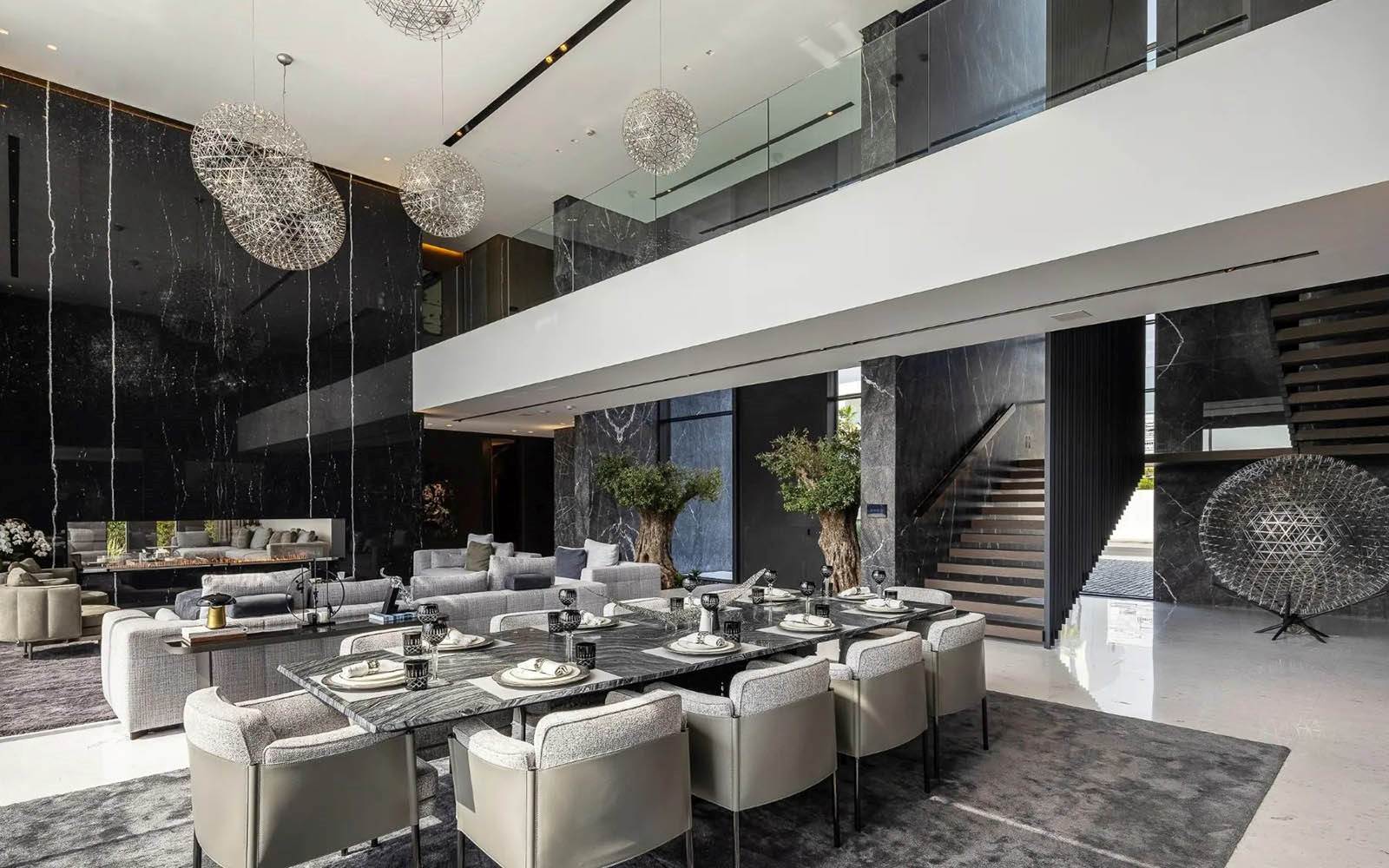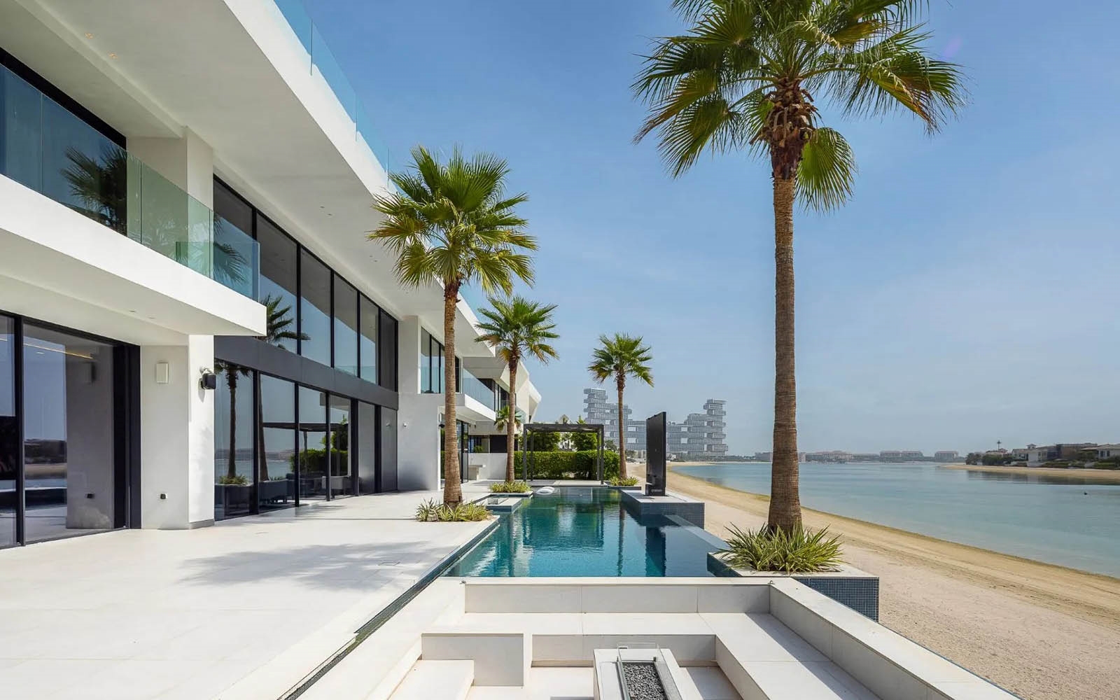 Striking elegance and architectural rigour define this exclusive beachfront villa, located on the prestigious Frond G of Palm Jumeirah. Enhanced by iconic, timeless Minotti furnishing pieces, the residence takes shape as a contemporary three-level home, where architecture, interior design, and landscape engage in a continuous, effortless dialogue.