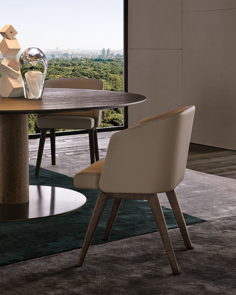 Reeves “Dining” leverages the qualities of its namesake armchair in the design of a little armchair that combines comfort and well-balanced proportions.