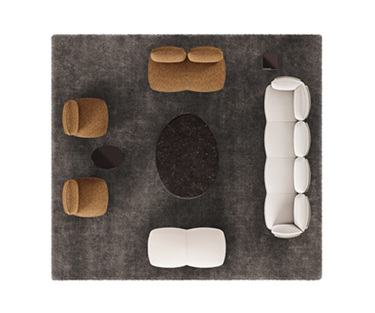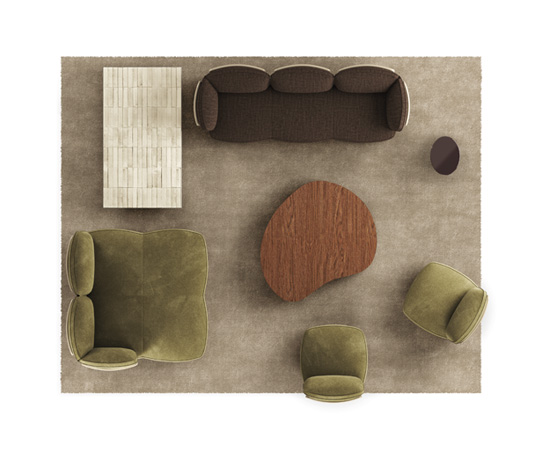 Based on a concept of modularity, Saki is available in 2-, 3-, or 4-seat sofa versions with two different depths, in an armchair version with or without armrests, in benches and in original island-like elements, available in various configurations. The system features large seats with a curvilinear silhouette, embellished with a perimeter piping that elegantly defines its profile. Oki Sato interprets the symbol of the bud “in the subtle incisions made on the top of the cushion, at the corner, creating a well-balanced separation and cohesion, seamlessly transitioning from the backrest to the armrest.” A light and sinuous movement, translating into an enveloping and protective comfort, further enhanced by the softness of the cushions featuring a moulded internal structure, the result of meticulous ergonomic design.