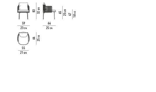 The seats become deeper, larger and more relaxing, while the metal frame, in a new outdoor finish, is covered with the wicker-effect cords available in two colours: Mud and Liquorice.