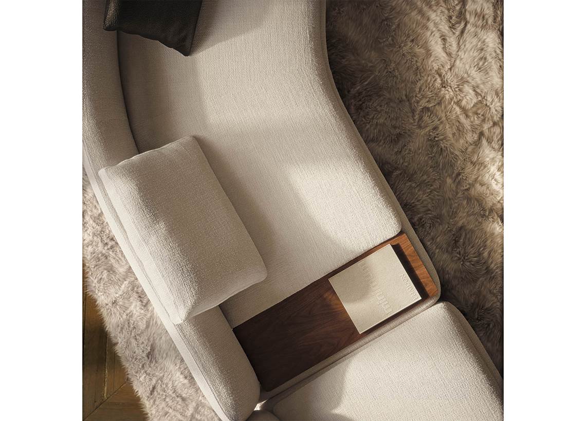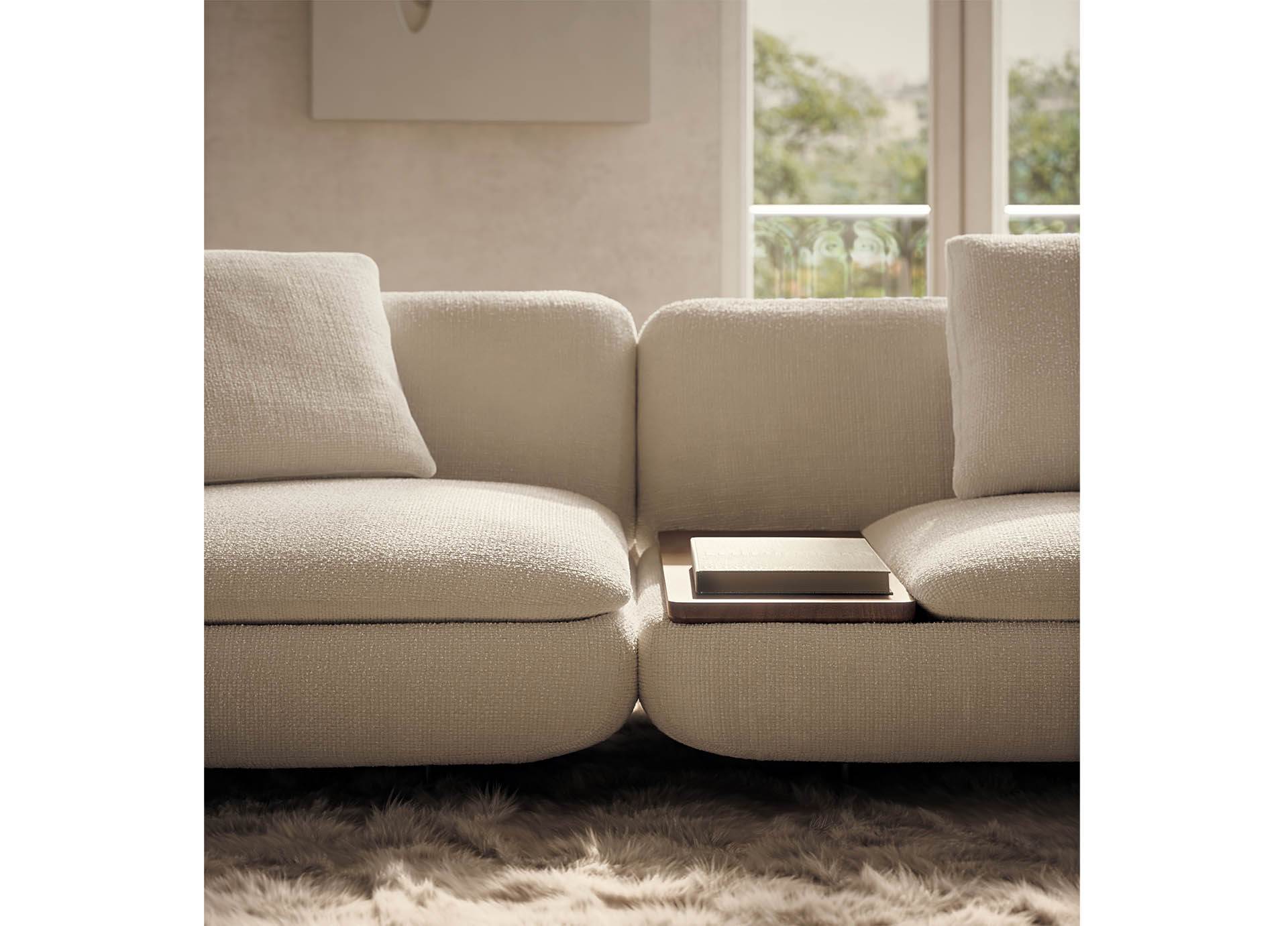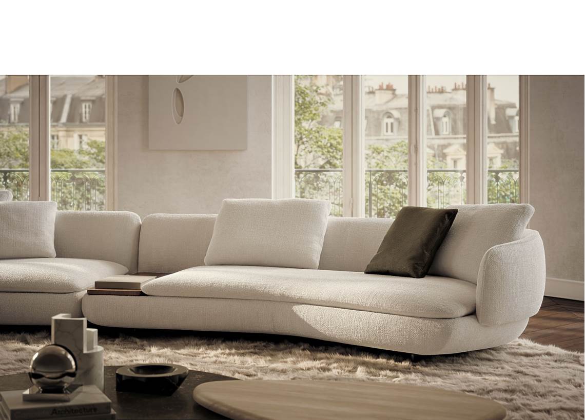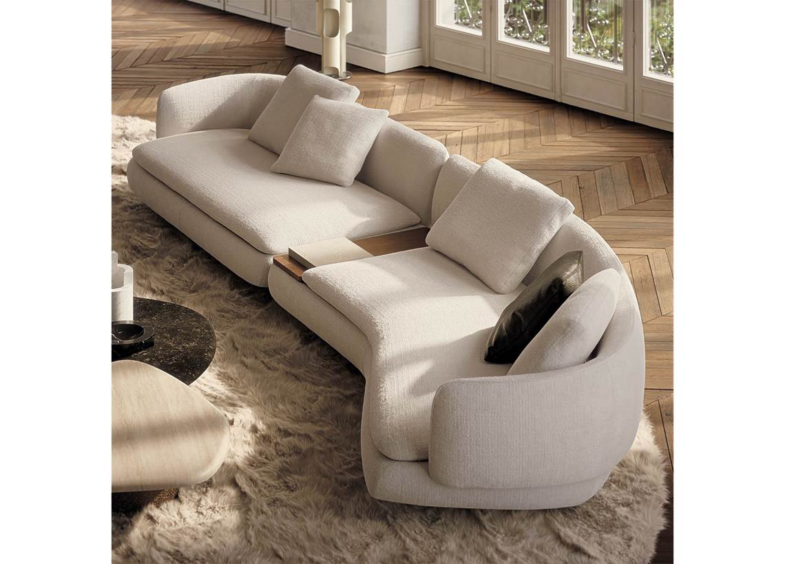 As a result, the seat appears thinner — a detail that gives the upholstery a more delicate look, making it feel light while remaining incredibly comfortable. The designers describe this seating system as “a piece that plays with the harmony of shapes. Its soft and generous curves, typical of the Vivienne Large armchair, evolve into a sofa system with new proportions. A perfect balance between sinuosity and geometric rigour, between the decorative and the essential, making it suitable for any modern space while maintaining an iconic and organic character.”