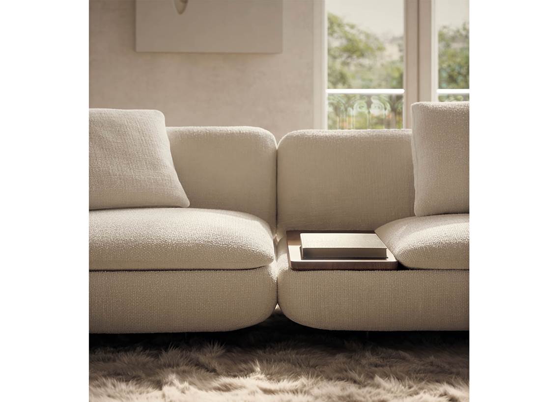 Vivienne is a system that offers great compositional versatility, and, in addition to sofas, end pieces and chaise lounges, it also includes elements with tops, thus giving rise to original combinations and creating a cohesive style for spaces of different sizes.
