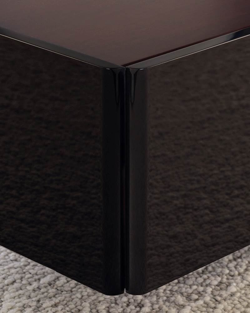 Internal structure: in MDF, 20 mm thick, with Moka colour matt lacquer when the exterior is in wood and Moka colour glossy lacquer or Cappuccino colour matt lacquer when the exterior finish is in Cappuccino glossy lacquer finish. Doors, drawer fronts, side and back panels in MDF, 25 mm thick, contoured.