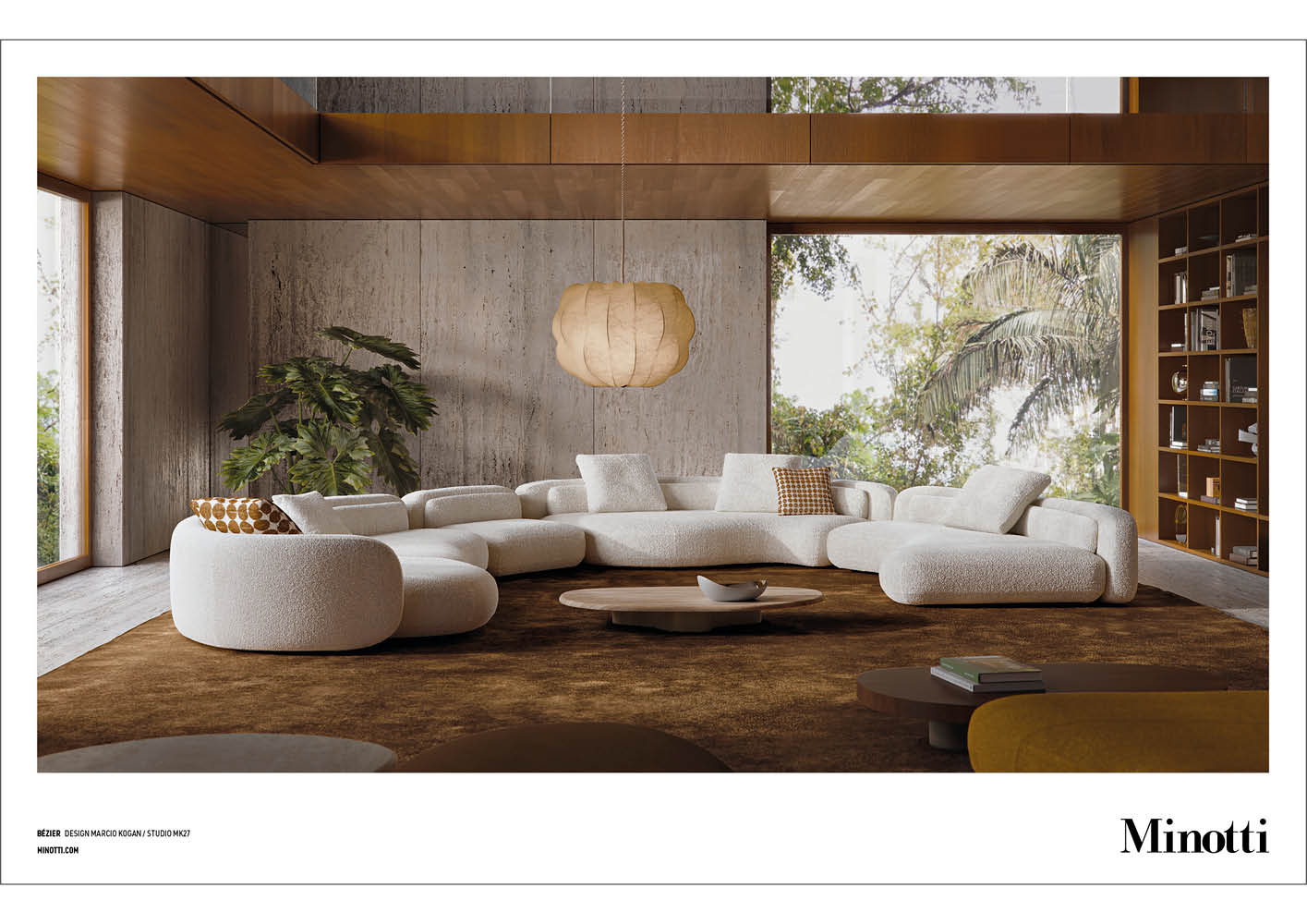 Disponible desde septiembre, la nueva campaña publicitaria de Minotti presenta por primera vez cuatro temas protagonizados por los sistemas de asientos de la 2025 Collection, presentados el pasado mes de abril con motivo del Salone del Mobile.Milano: Bézier , diseño de Marcio Kogan / Studio MK27; Coupé, de Giampiero Tagliaferri; Vivienne, de GamFratesi, y Riley, de Hannes Peer.
