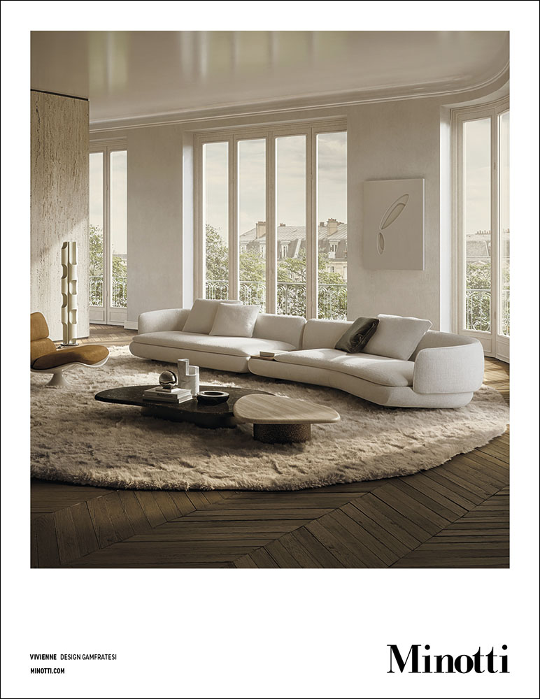 Una narración fotográfica ideada por Minotti Studio que relata la visión creativa y la evolución del pensamiento proyectual de la marca a través de cuatro ambientes evocadores, intérpretes de los cuatro proyectos y de otras tantas sensibilidades estéticas. Coherentes entre sí y fuertemente vinculadas a los valores de la marca, los diferentes ambientes transmiten el estilo de vida, el sentido estético y el inconfundible saber hacer artesanal de Minotti.