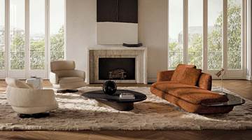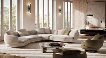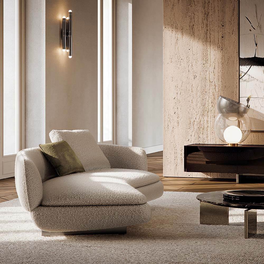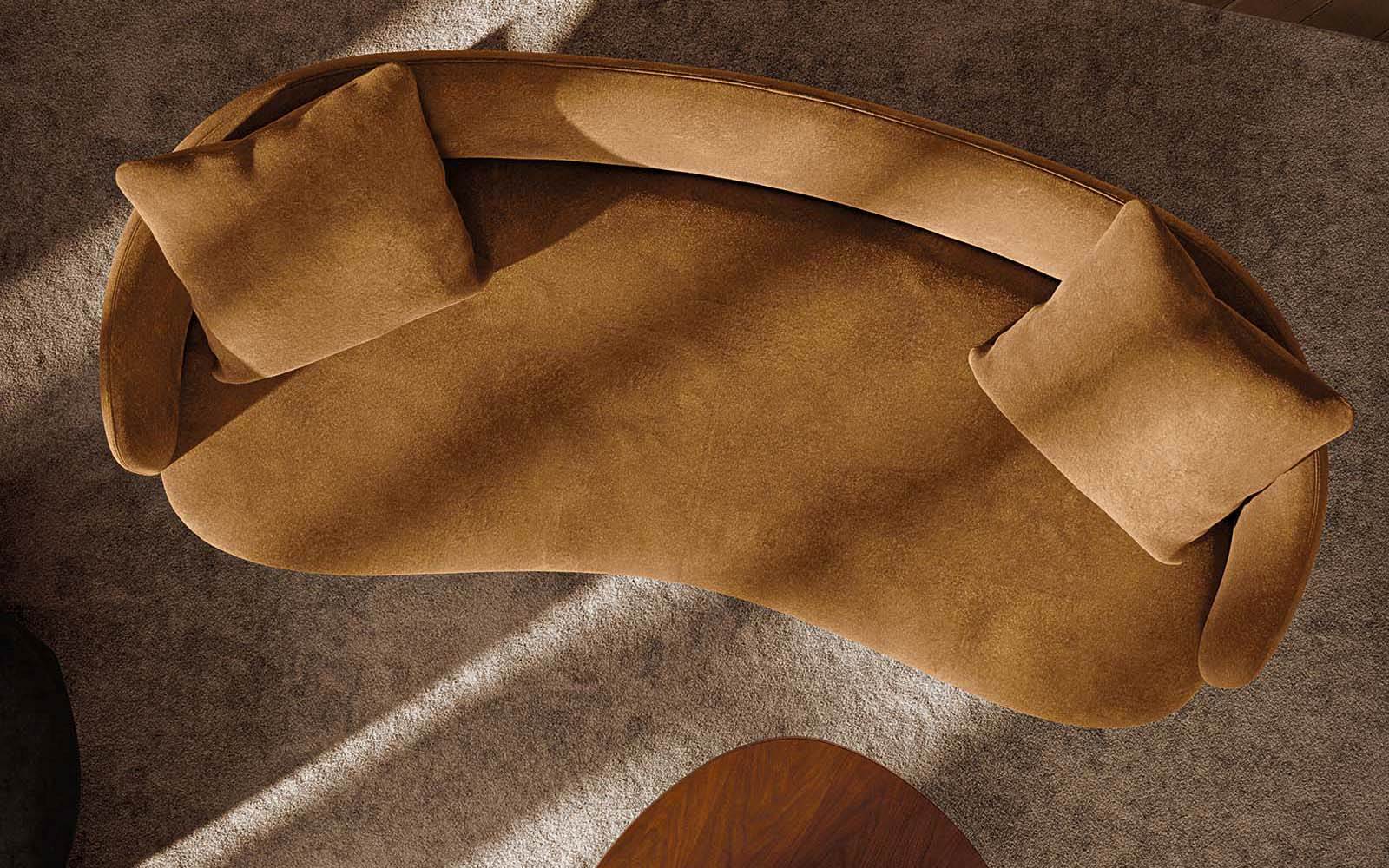 De la curva en forma de hemiciclo del respaldo del sillón Vivienne nace el sistema de asientos homónimo de estética contemporánea, del dúo de diseñadores italo-danés GamFratesi. El respaldo que abraza el asiento se convierte también en reposabrazos, lo que confiere al sofá una esencia marcadamente decorativa. Se trata de un diseño caracterizado por una base tapizada de formas finas, sostenida por barras de aluminio empotradas, que aloja y oculta parcialmente el grosor de la tapicería, pareciendo más fina a la vista: un detalle que confiere a la tapicería un aspecto más delicado, haciéndola ligera a la vez que extremadamente cómoda.