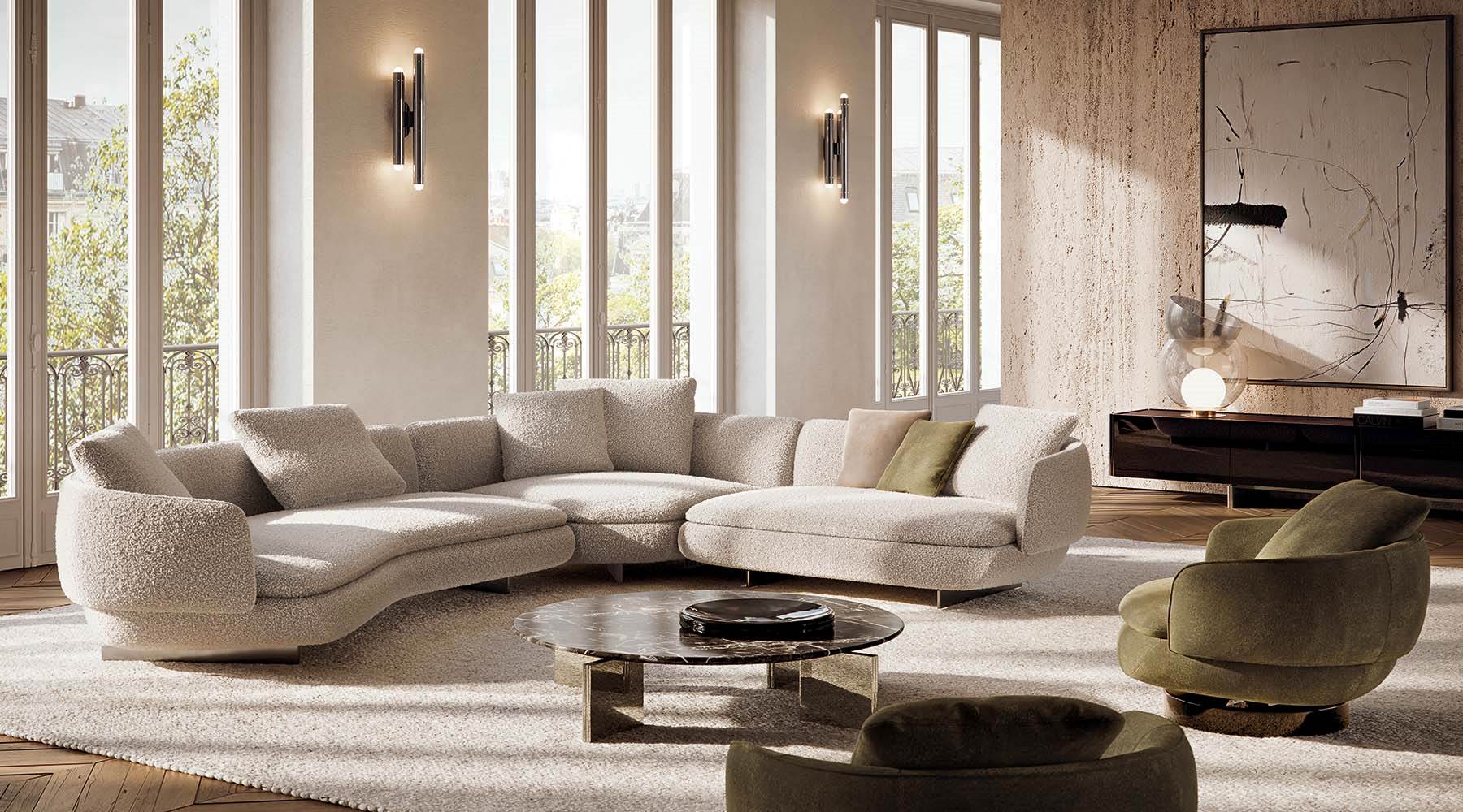 ADV2025: el sistema Vivienne, diseñado por GamFratesi, con un carácter distintivo y orgánico, encuentra su lugar en un contexto clásico-contemporáneo caracterizado por un cuidado juego de materiales sofisticados y elementos decorativos que transmiten tanto equilibrio como profundidad estilística.