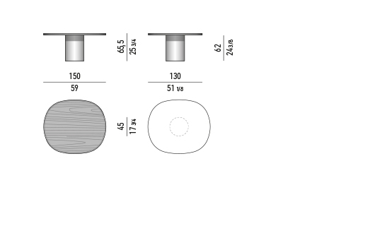 Un meuble capable d'occuper le devant de la scène, grâce à sa base cylindrique, en acier inoxydable ou en métal Black Coffee, sur laquelle repose un plateau elliptique aux formes arrondies, en marbre ou en bois.