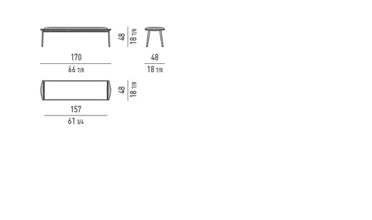 Completa la famiglia di sedute la panca, con telaio intrecciato da corde effetto midollino di colore Fango su cui appoggiano i cuscini.