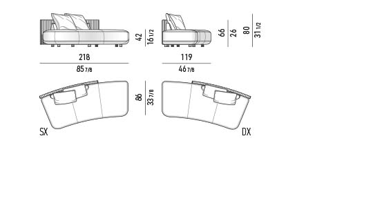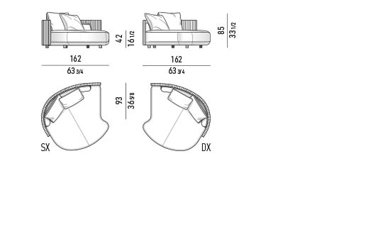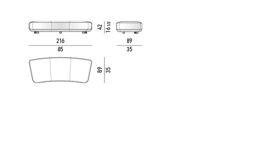極めて快適なモノブロックシートは、厚さの異なる高密度ウレタンフォームを精密に重ねることで実現した柔らかさが特徴で、シート表面全体に均質な座り心地をもたらしています。有機的なフォルムゆえ、ステッチは極めて精細なサルトリア仕上げで施され、各エレメントの曲線を丹念に追っています。深くゆったりとしたシートは、少し奥に配置されたダークブラウンの塗装ステンレス脚によって床から持ち上げられており、フォーマルなシーンにも、くつろぎのひと時にも理想的なシステムです。
