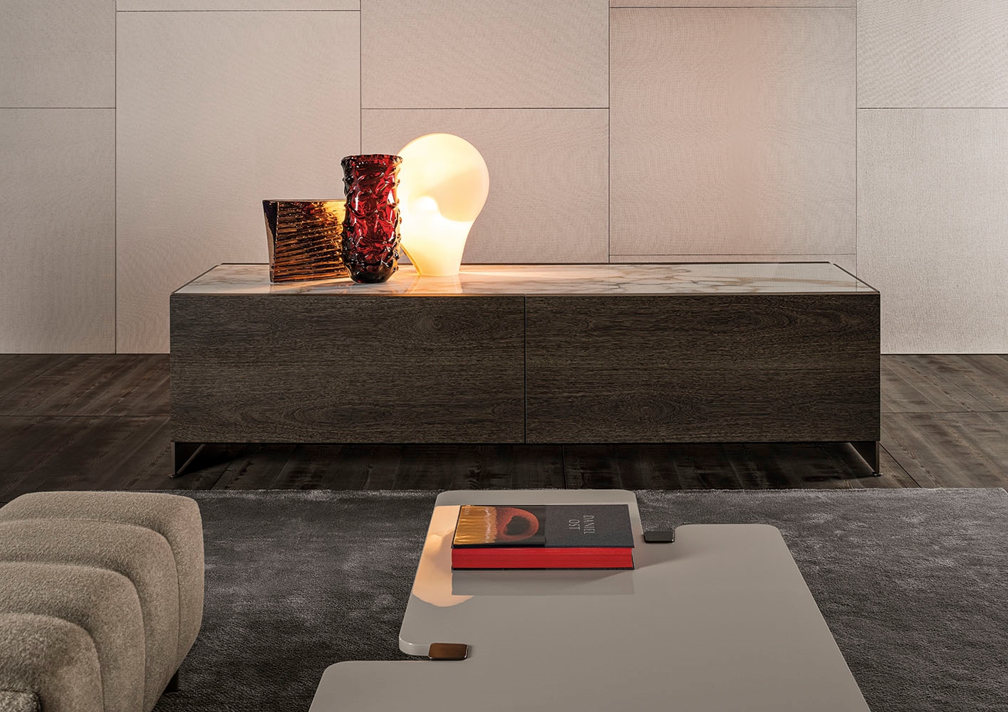 Carson収納ユニットのコレクションは、ミニマルでモダンなデザインの美しさを、高級感のある素材の組み合わせで表現しています。