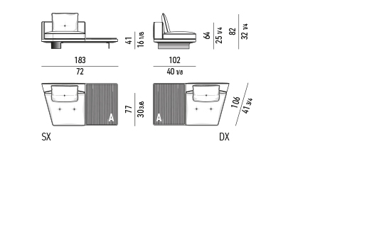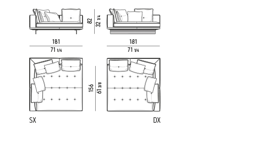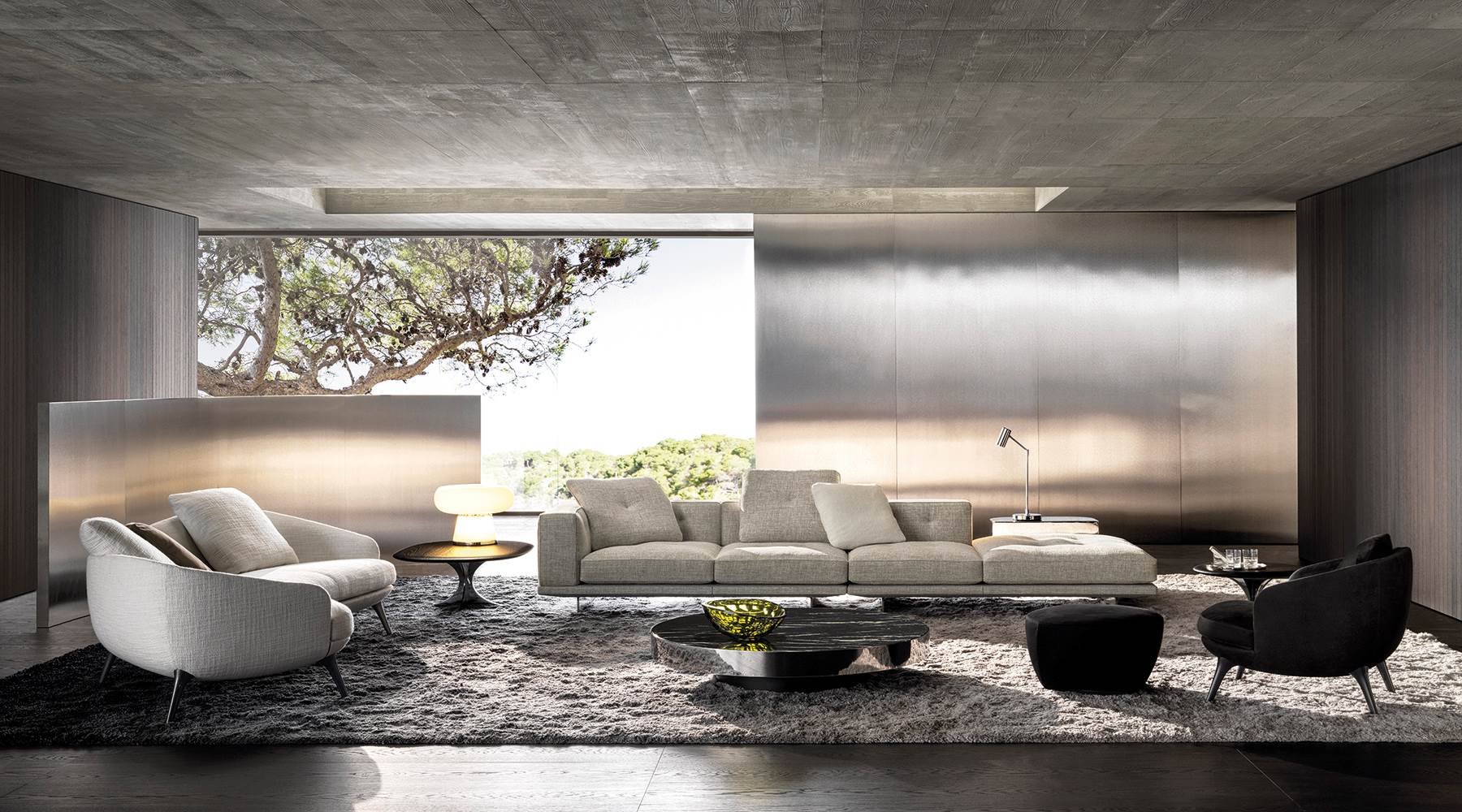 Dylanは、その細部に至るまで、張地の高度なテーラリング仕上げと、合理的なフォルムの多面性が組み合わされており、現代的なリビングスペースの解釈や住まい方と調和しながら、完璧に融合するものです。