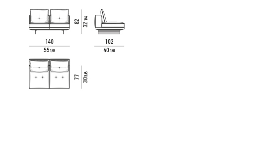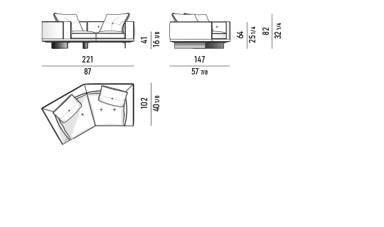 このDylanモジュラーシステムがまとう幾何学的で直線的なフォルムは、クッションのステッチに加え、バックレストとアームレストにつけられた柔らかなカーブによって、しなやかで包み込むような満ち足りた座り心地を生み出しています。