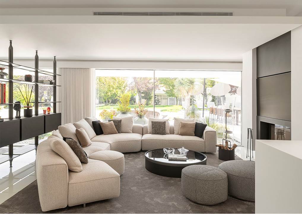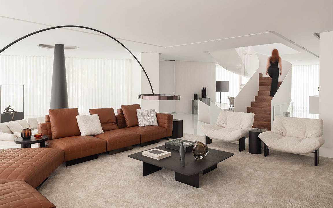 「AA」の住居コンセプトは、建築とインテリアデザインを調和の中に融合させ、Minotti家具のタイムレスで美しい外観が彩る、明るく洗練された空間を生み出しています。The images available on our website are copyright-protected and are proprietary to Minotti SpA.
