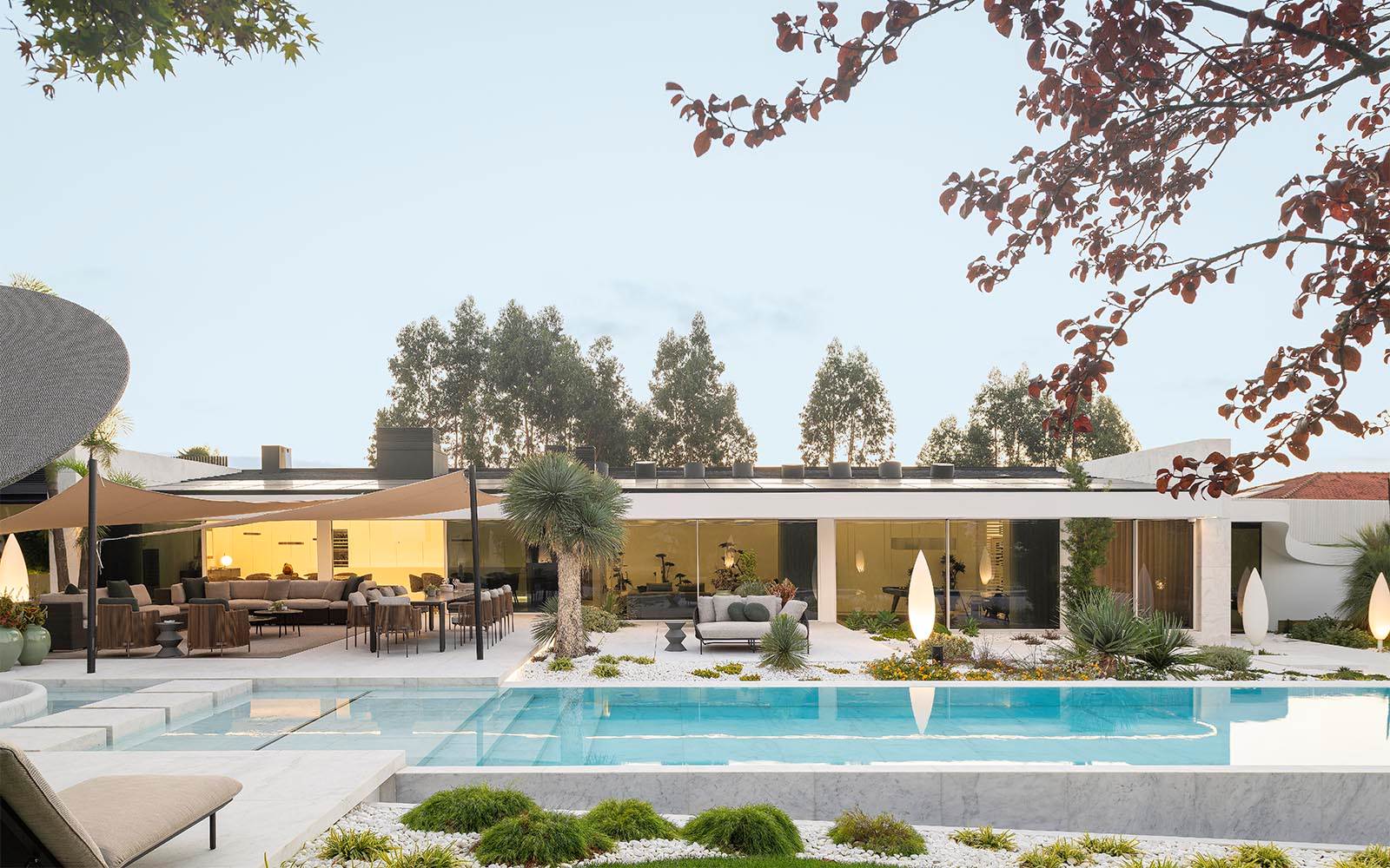 ポルトガル北部に建てられたこのレジデンシャルプロジェクト「AA」は、建築、景観、インテリアデザインが自然に絡み合う流動的な体験としてのコンテンポラリーライフスタイルを解釈したものです。ブランドの家具セレクションがその魅力を最大限に表現できる内装は、落ち着きのある雰囲気と極上の居心地を演出しています。