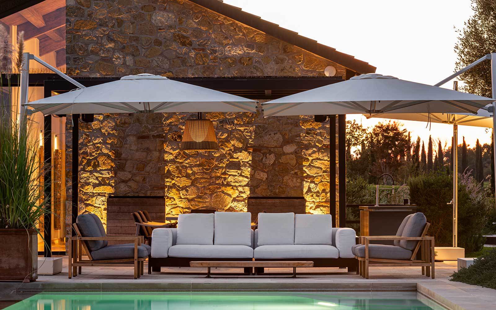 すべてにおいて、建築、家具、景観の調和に配慮したプロジェクト。こうして誕生したのが、コンテンポラリーでエレガント、かつ機能的なアウトドア空間であり、本格的でタイムレスなオープンエアリビングを体験できるように仕上がっています。